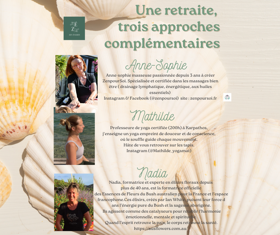 Venez vivre un week-end de bien être tout inclus =, ou trois professionnelles passionnées vous accueilleront chez Zenévasion Gîte sur la Begude de Mazenc. Sur inscription et paiement d'un acompte demander votre dossier.